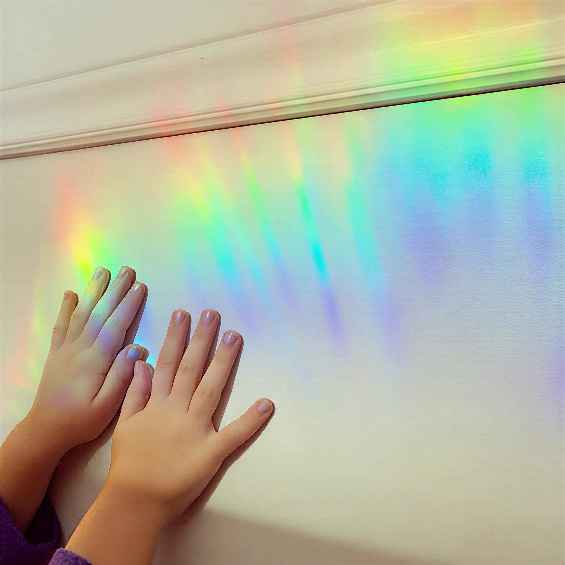 Decorative sun-catcher window stickers that fill your space with calming rainbows, warmth, and light.